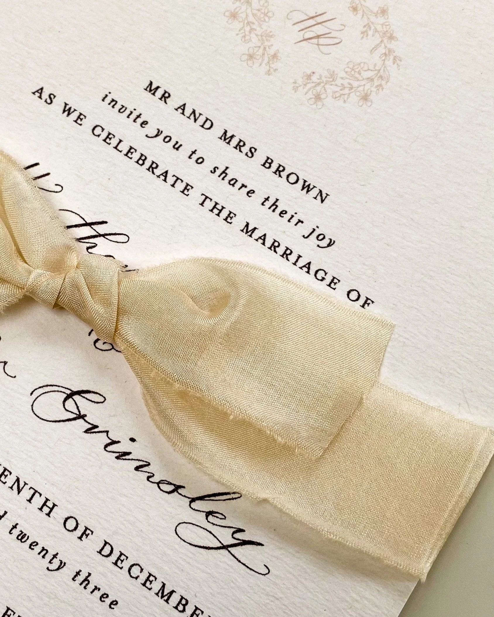 2. Silk ribbon: Choose a colour that compliments your wedding colours and tie it delicately around your invitation suite or tie it at the top to add a little detail or go bold with a big bow.